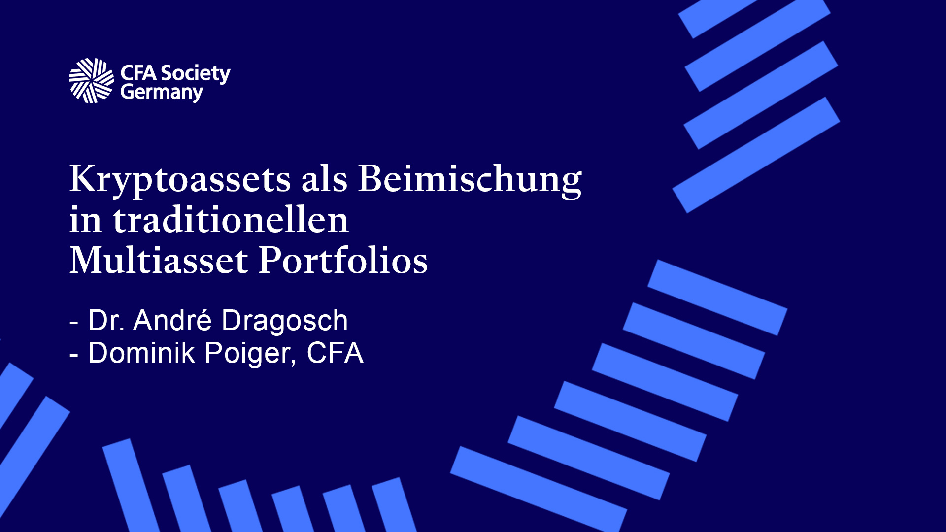 Die CFA Society Germany lädt Sie herzlich zum CFA Webinar "Kryptoassets als Beimischung in traditionellen Multiasset Portfolios" mit André Dragosch, PhD. und Dominik Poiger, CFA ein.